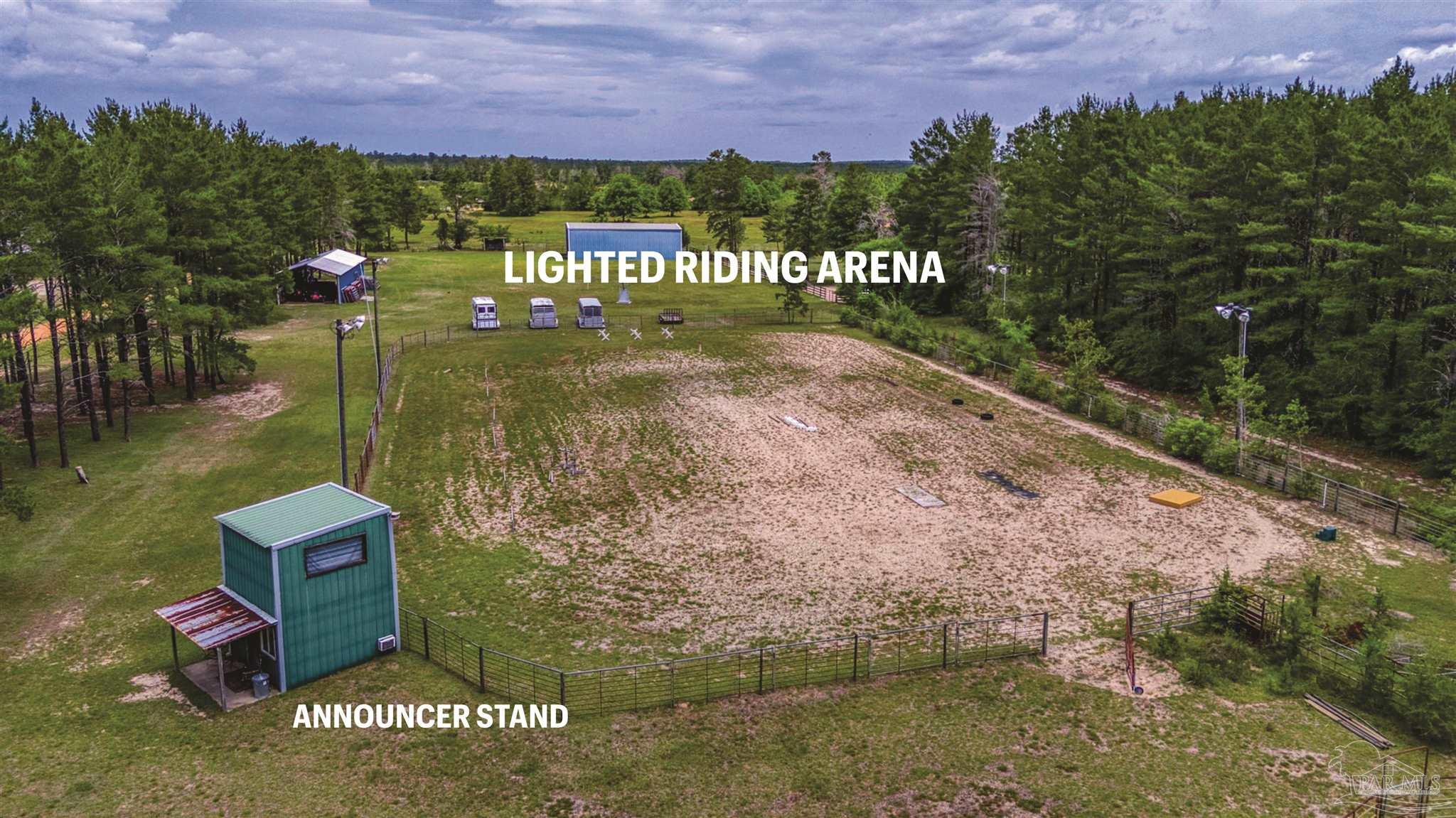 Welcome to a one-of-a-kind equestrian estate designed for serious horse lovers, trainers, and riding enthusiasts. With close to 20 acres zoned Agricultural & 1 acre residential this horse training facility is fully equipped w/everything needed to run a successful training & boarding operation - income is unlimited! This full-scale boarding, training, show & lesson business has a 70 ft round pen ideal for breaking, training, lunging and youth riding lessons. Lighted Riding Arena w/ two story announcers stand. Top floor has 2 large windows for a full view of the arena. Main floor concession stand w/commercial sink, cabinets, counters, microwave & connections for ice maker & freezer. Set up for day & evening shows. Great for training, lessons, pony club and other group events. Plenty of parking for trucks and trailers to haul in. A powered hot walking machine & dedicated wash rack for horse care. Shed row barn offers 12 spacious 12x12 stalls & a 24x24 feed room/tack room - built-in secure easy access feed storage container & dusk-to-dawn exterior lighting. The 60x40 Redbuilt iron steel building on an 8 inch slab w/ 14x14 roll up door w/ side door for storing hay & equipment. Convenient 20x60 barn with power is open at both ends for easy drive through & machinery. Infrastructure includes well house serviced and updated in 2024, two separate electric meters, an RV plug w/ septic hookup, a 2 bed/1 bath mobile home w/ new hot water heater, washer/dryer, full kitchen—offered as-is. Thoughtfully installed half bath located by the barn. A tree-lined buffer at the front with wooden fencing provide privacy from the road. The property is fully fenced - two pastures w/ RedBrand welded woven fencing, topped w/ a hotwire. The barn area is fenced w/ cattle panels & third pasture w/ wooden fencing, woven fencing & hot wire. A hay hut will be included for hay. Miles of scenic riding trails on adjoining state property. Use this property for your vision. Come see this amazing property!