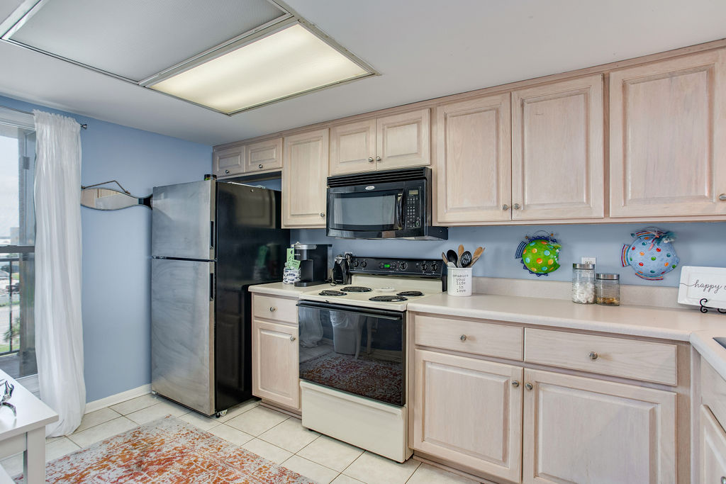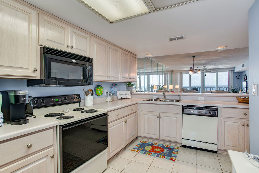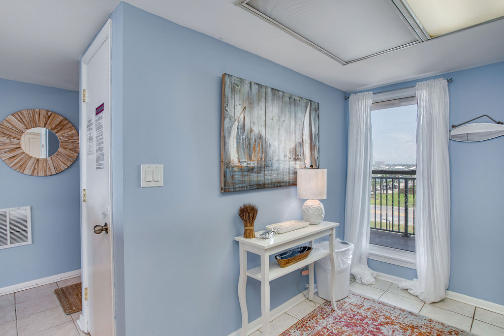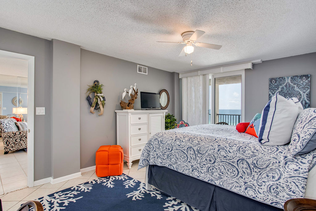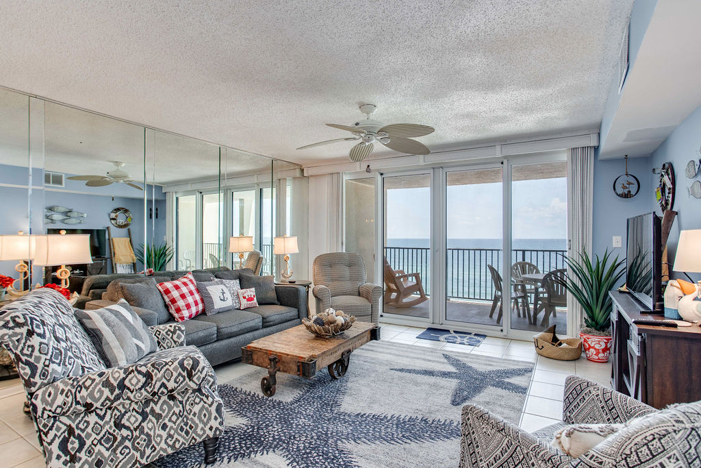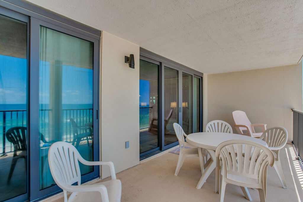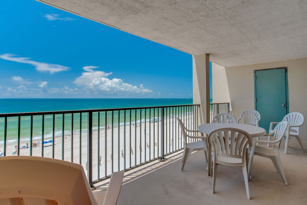 Your large ocean-view balcony offers Gulf views perfect for dolphin watching and enjoying the coastal breeze. Whether sipping morning coffee or gathering for evening cocktails at sunset, the balcony provides extra living space with wonderful water views. Watch the sunrise and enjoy the sound of waves throughout your stay.