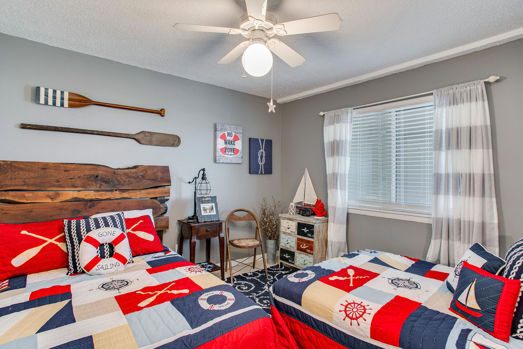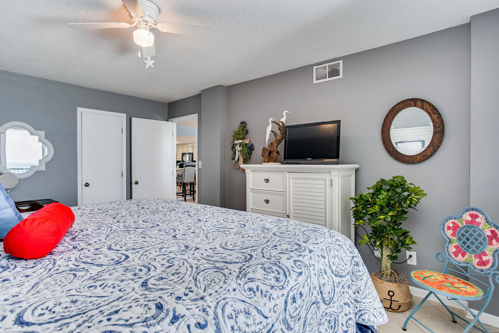 Experience Orange Beach at Wind Drift 509 SW, a 2-bedroom, 2-bathroom Gulf-view condo that sleeps 8 guests. This family-friendly vacation rental features a wet bar with shiplap accent wall, large ocean-view balcony perfect for dolphin watching, Keurig coffee maker, large walk-in closet in the primary suite, and access to Wind Drift's exceptional dual-waterfront amenities. The spacious layout includes a breakfast bar with 3 bar stools and outside storage for all your beach gear.