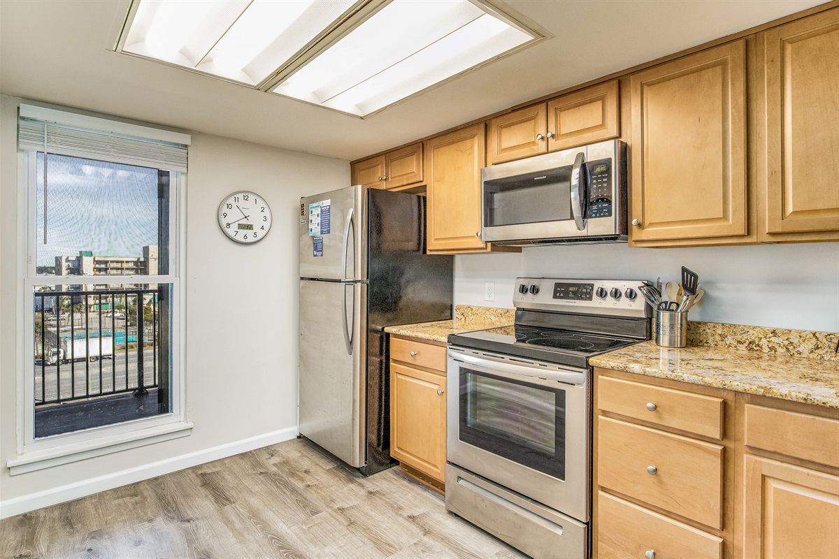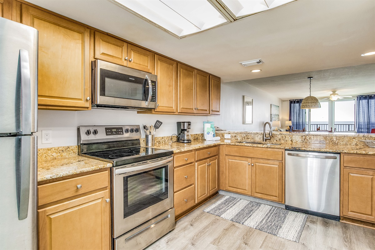 The fully equipped Orange Beach vacation rental kitchen features: