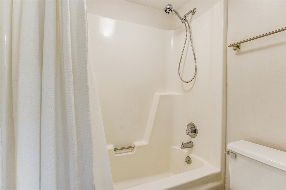 Separate private space beyond with shower/tub combination