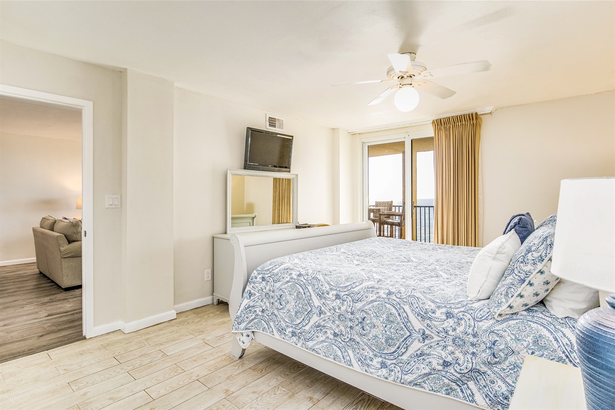 King bed with Gulf views of sugar-white sands