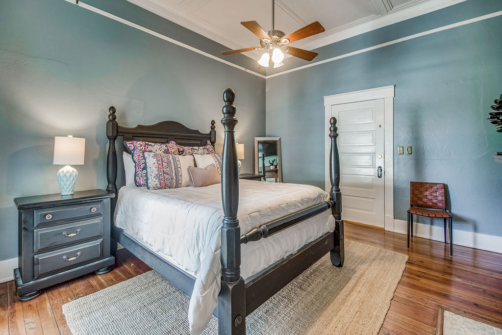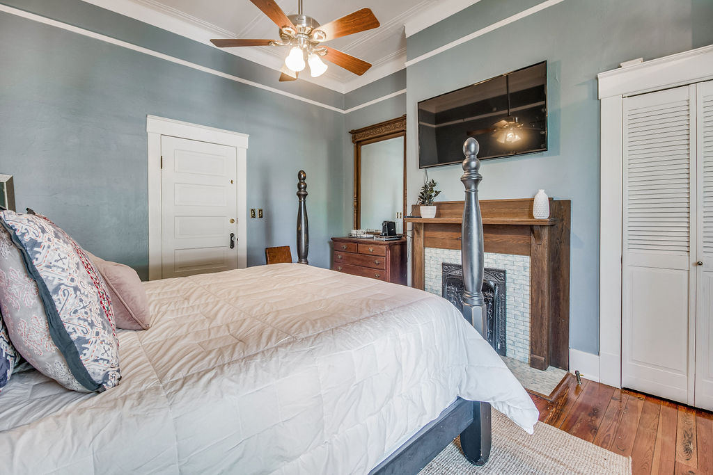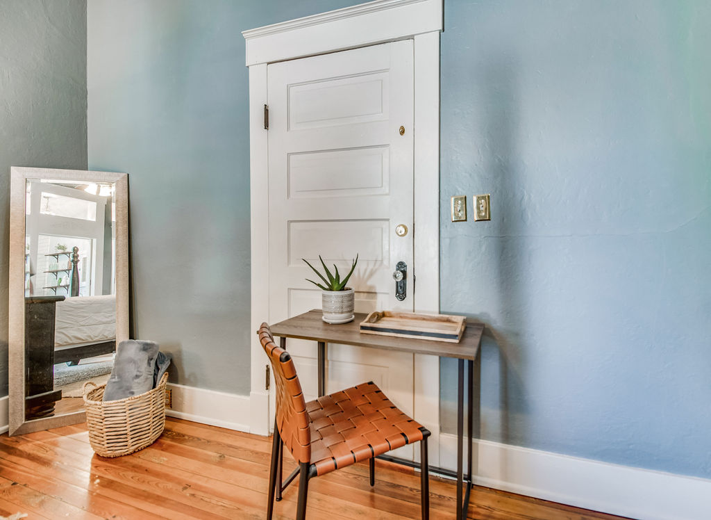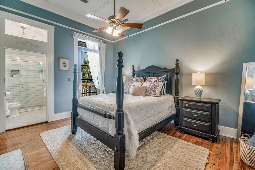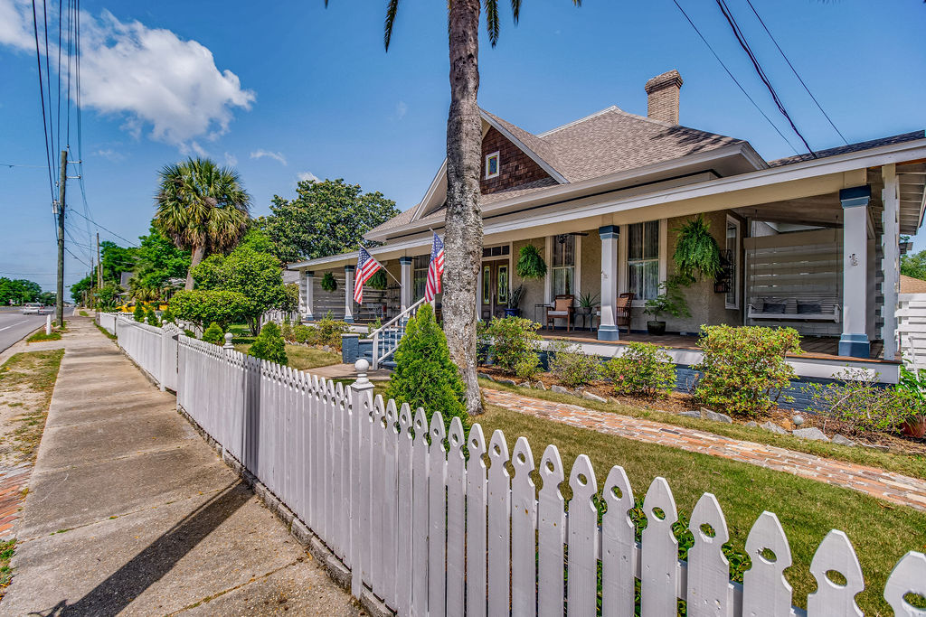 Welcome to the Hubbert Room. This private suite is located on the West side of a well maintained 1900 historic East Hill home. Your private patio and entrance will lead you into the spacious suite with its tall ceilings, queen bed, work desk, 55" Smart TV, and private en suite bathroom with a tiled stand up shower. The room comes equipped with a mini fridge, microwave, Keurig/Coffee Maker perfect for small meals indoors. Step outside and relax on either the beautiful wrap around front porch for morning coffee and evening cocktails or enjoy your private patio just outside your door. Enjoy all the conveniences of this East Hill neighborhood - where you will be walking distance to parks, coffee shops, restaurants, a juice shop, the neighborhood Publix and breweries. Just a short 5 minute drive to downtown, 10 minutes to the airport, and 15 minutes to beautiful white sand Pensacola Beach!