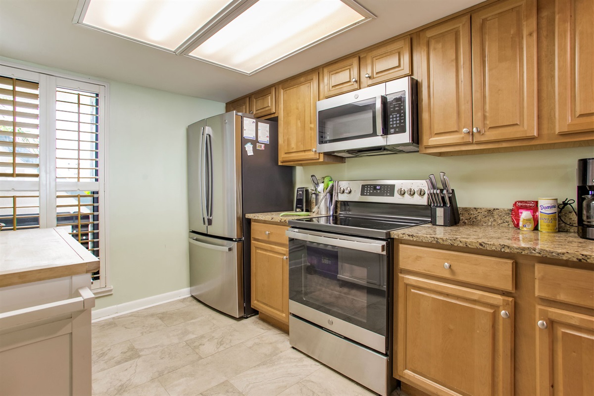 The fully equipped Orange Beach vacation rental kitchen features:
