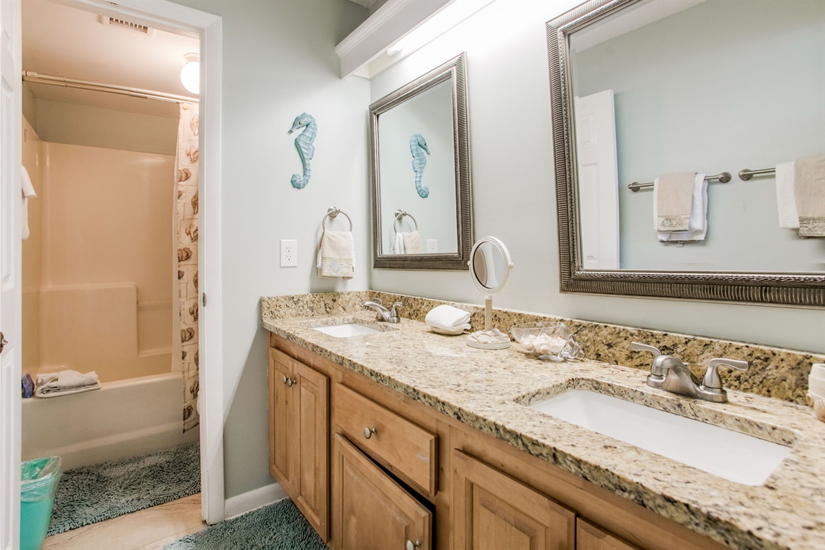 Double vanity sinks with granite countertops—generous counter space for two